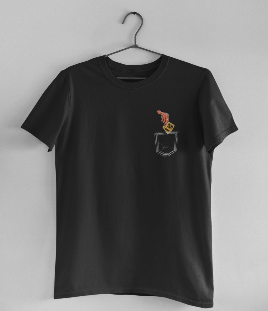 When life hands you a situation, do you pull out the Victim Card? With a pocket design showing hands pulling cards, this tee is for those who know when to play their cards and when to let others do the talking. Don’t just wear it, own it.